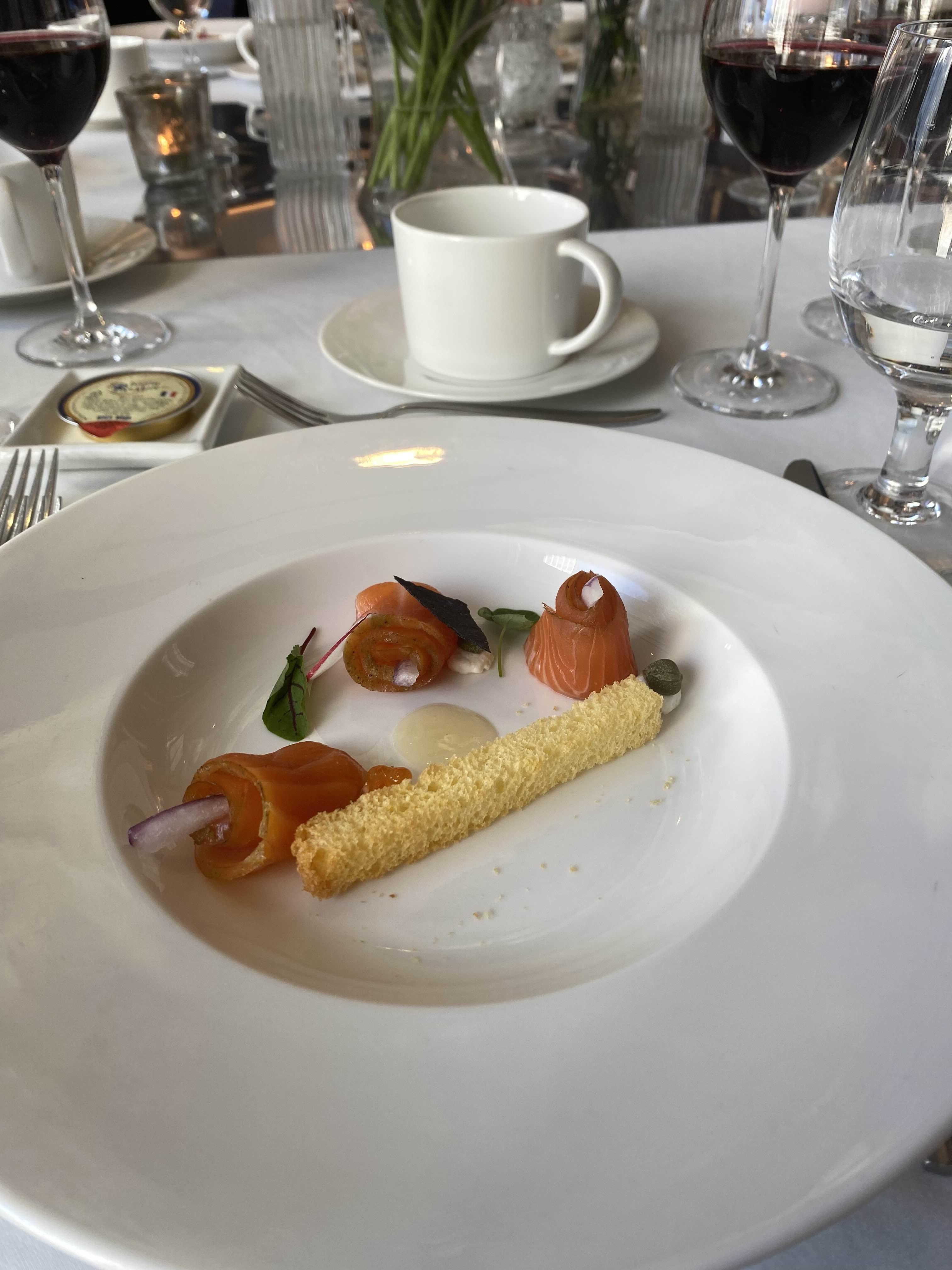 연어롤, 버섯 수프, 스테이크, 국수, 케이크, 커피